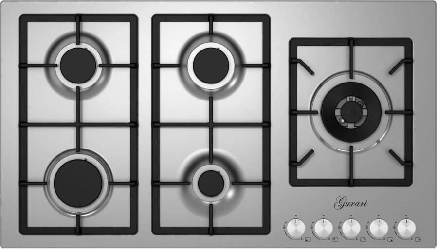 Gurari kookplaat FQ 905 VRGL Gaskookplaat 90 cm roestvrij staal 4 0 KW WOK 5 pits 5 gaspitte aardgas FL.gas