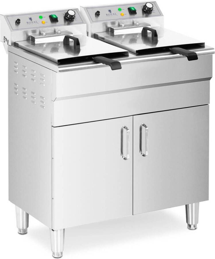 Royal Catering Dubbele elektrische friteuse 2 x 16 liter met aftapkraan